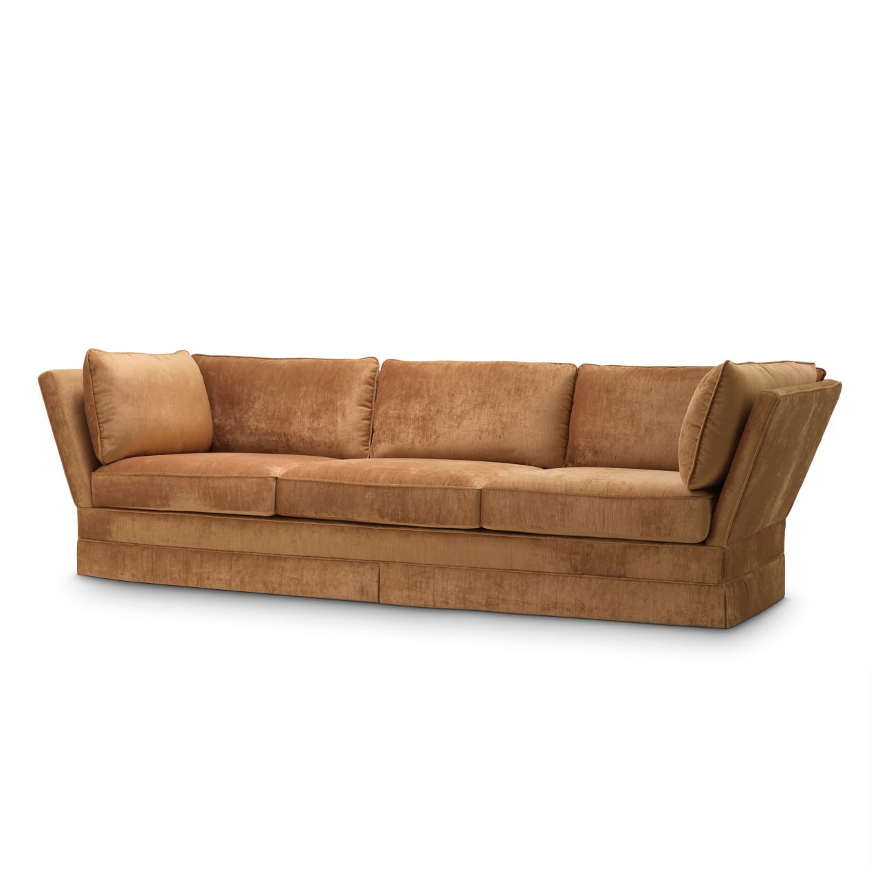 Эффектный диван Belvedere из коллекции The Met x Eichholtz: классические очертания с современной посадкой. Высокие раскрытые подлокотники, глубокое мягкое основание и аккуратная юбка формируют утончённый силуэт, который легко вписывается в интерьеры от неоклассики до современного люкса. Обивка – бархат Wrey в оттенке Copper: тактильный, износостойкий и простой в уходе. Диван Belvedere - это комфорт для долгих бесед: ширина 258 см, глубина 98 см, высота 72 см; глубина сиденья 67 см, высота сиденья 42 см. Надёжный каркас и максимальная нагрузка до 600 кг. Belvedere – выбор для тех, кто ценит музейный уровень эстетики и ежедневный комфорт