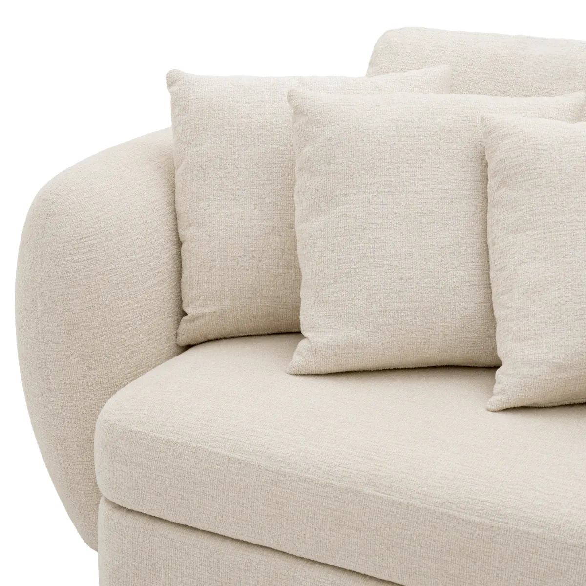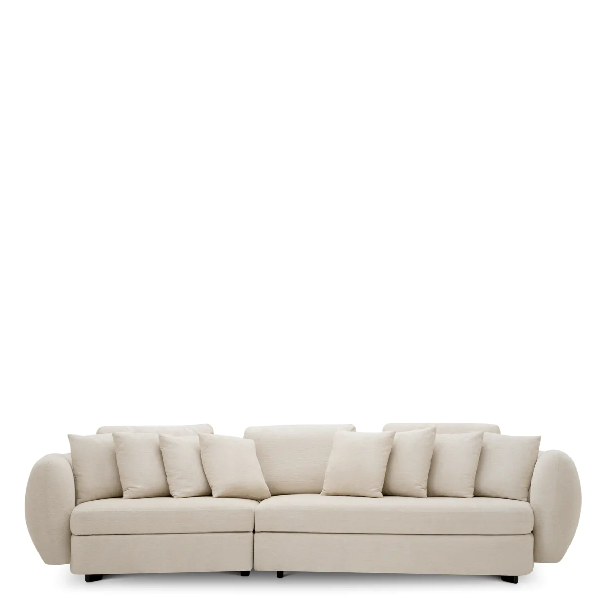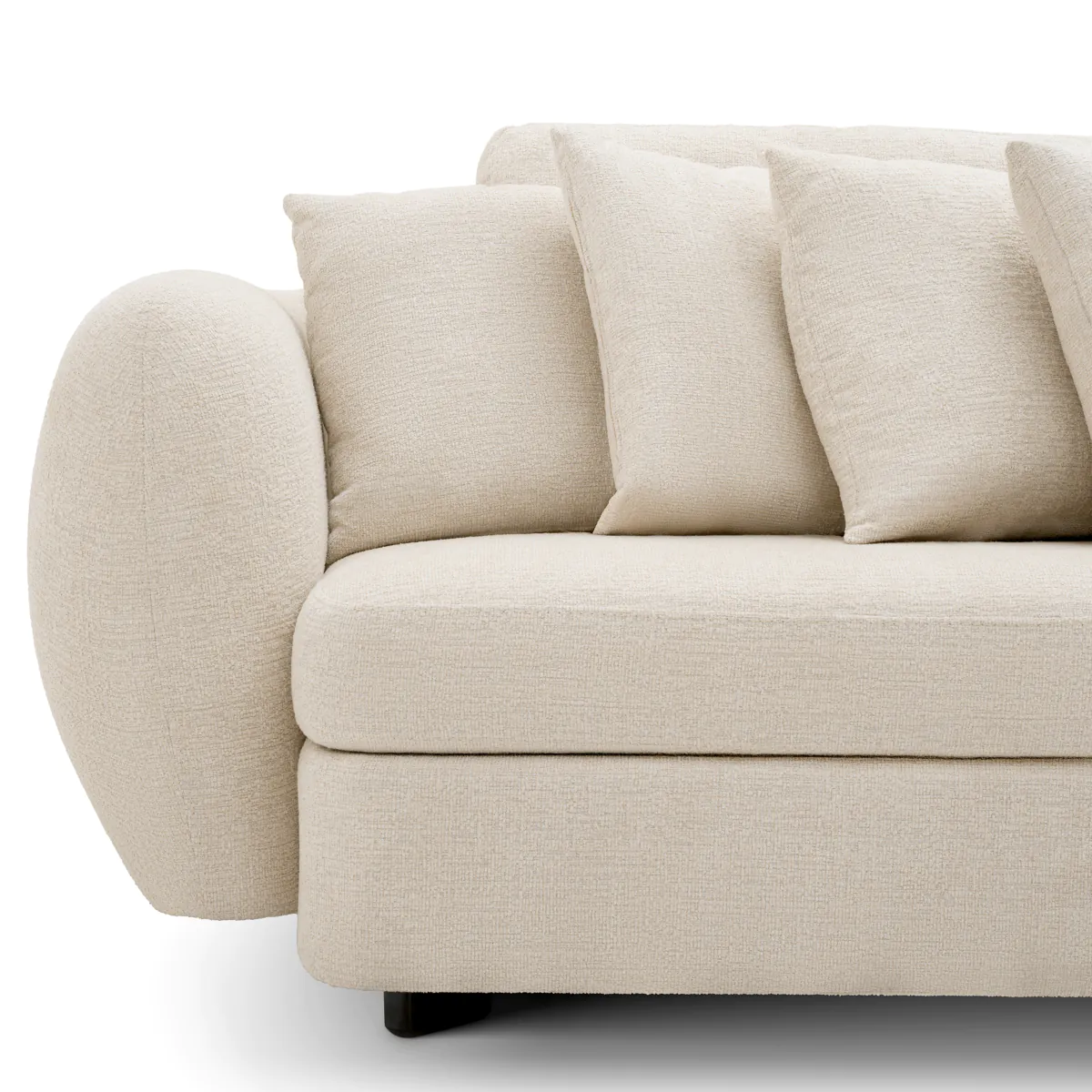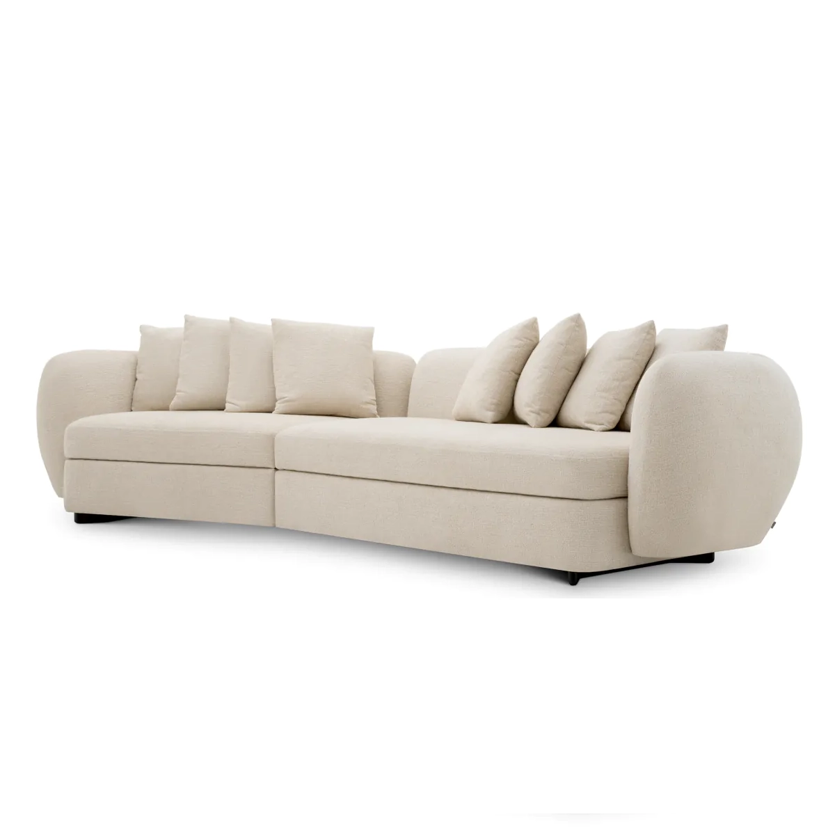 Обитый успокаивающей текстурированной обивкой Nuoro бежевого цвета и дополненный черными ножками, пышная округлая подушкообразная форма Sidney является квинтэссенцией роскоши. Его увеличенные подлокотники, уникальная изогнутая форма и множество декоративных подушек демонстрируют современный вид, который сочетается с различными эстетическими стилями, добавляя как стиль, так и содержательность вашему пространству.