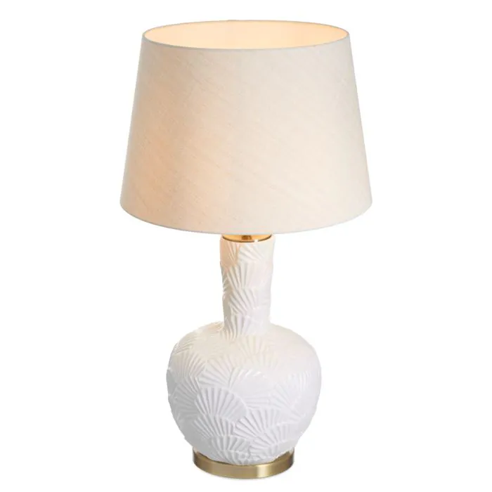 Откройте для себя минималистичное очарование настольной лампы Andorra — керамического чуда с узором, вдохновленным морскими ракушками.