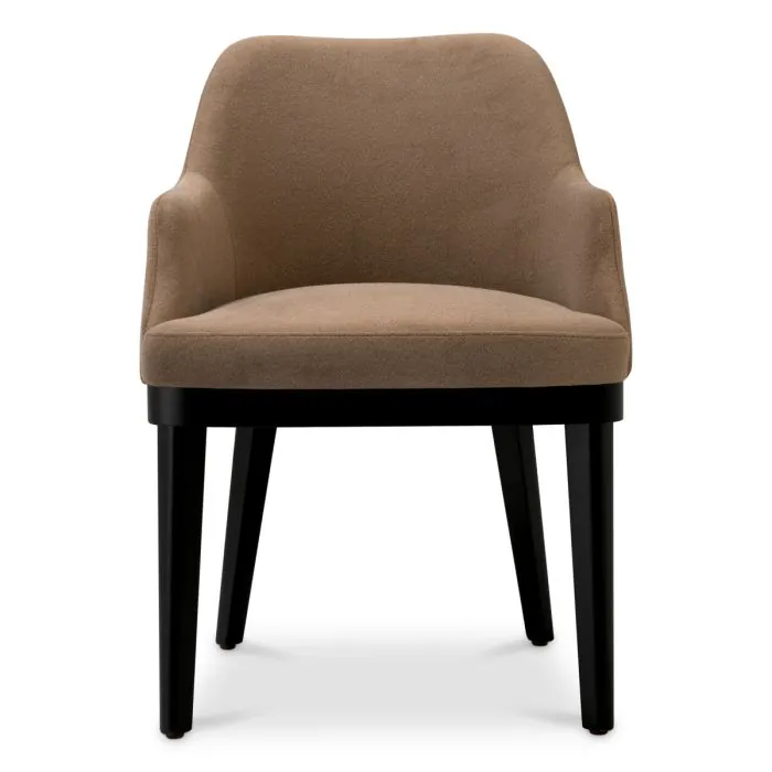 Обеденный стул Costa в коричневом цвете Sabino, сочетающий функциональность и элегантность, имеет ненавязчиво встроенную полку под сиденьем, обитым тканью Sabino, идеально подходящую для хранения сумочки или личных вещей в пределах легкой досягаемости.