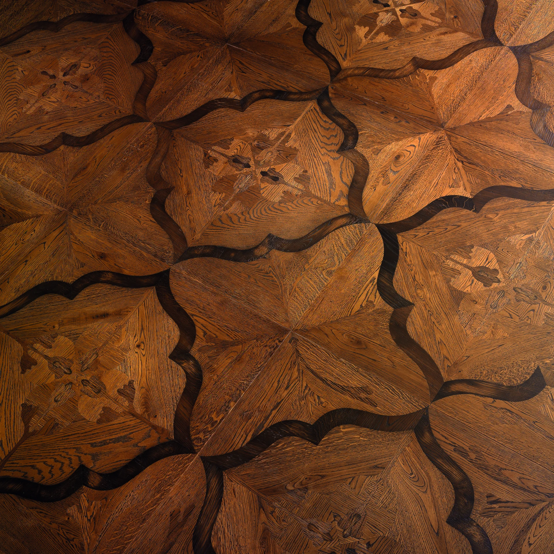 Эксклюзивные напольные покрытия ввиде модулей, инкрустированных вручную, со вставками из натурального дерева и других ценных материалов.