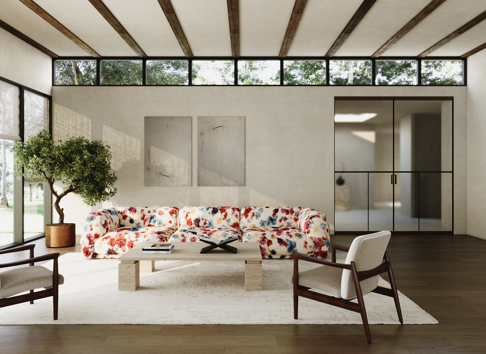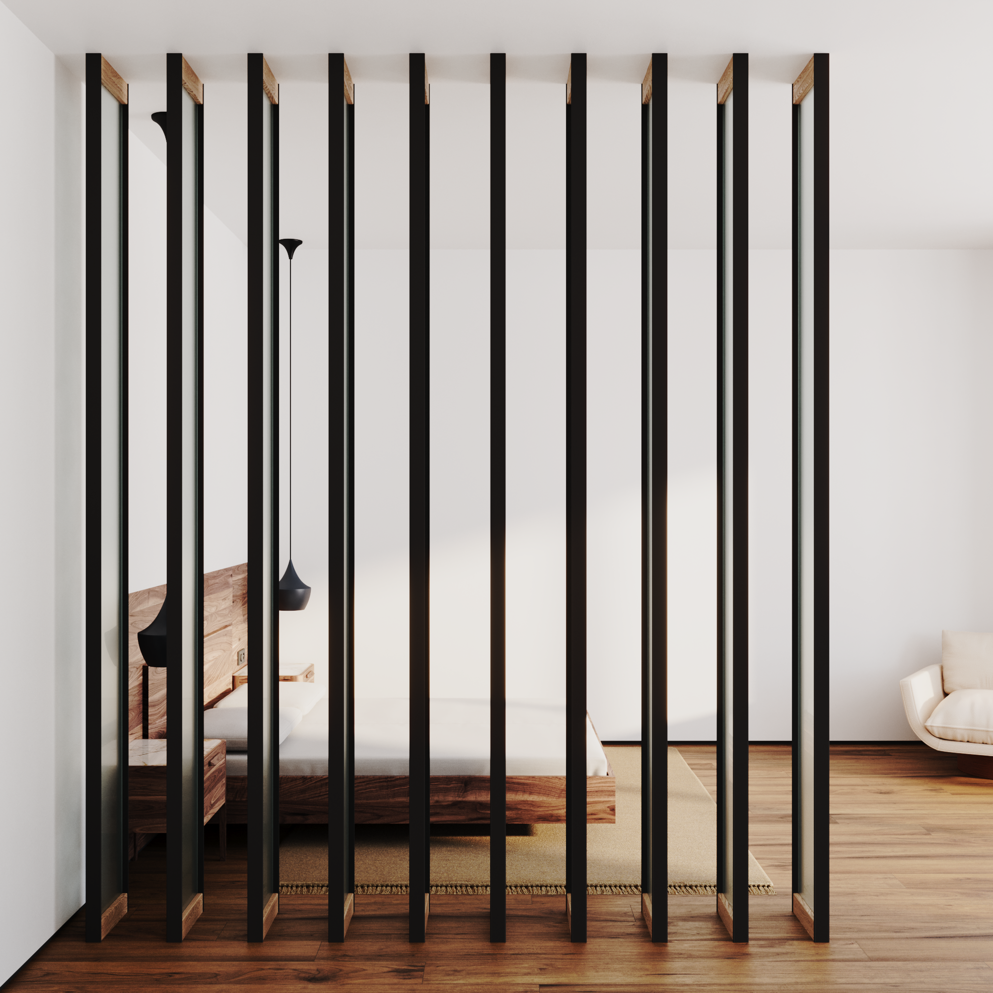 Именно эта лёгкость, гибкость в организации пространства и ощущение спокойствия и присутствия вдохновили нас.
