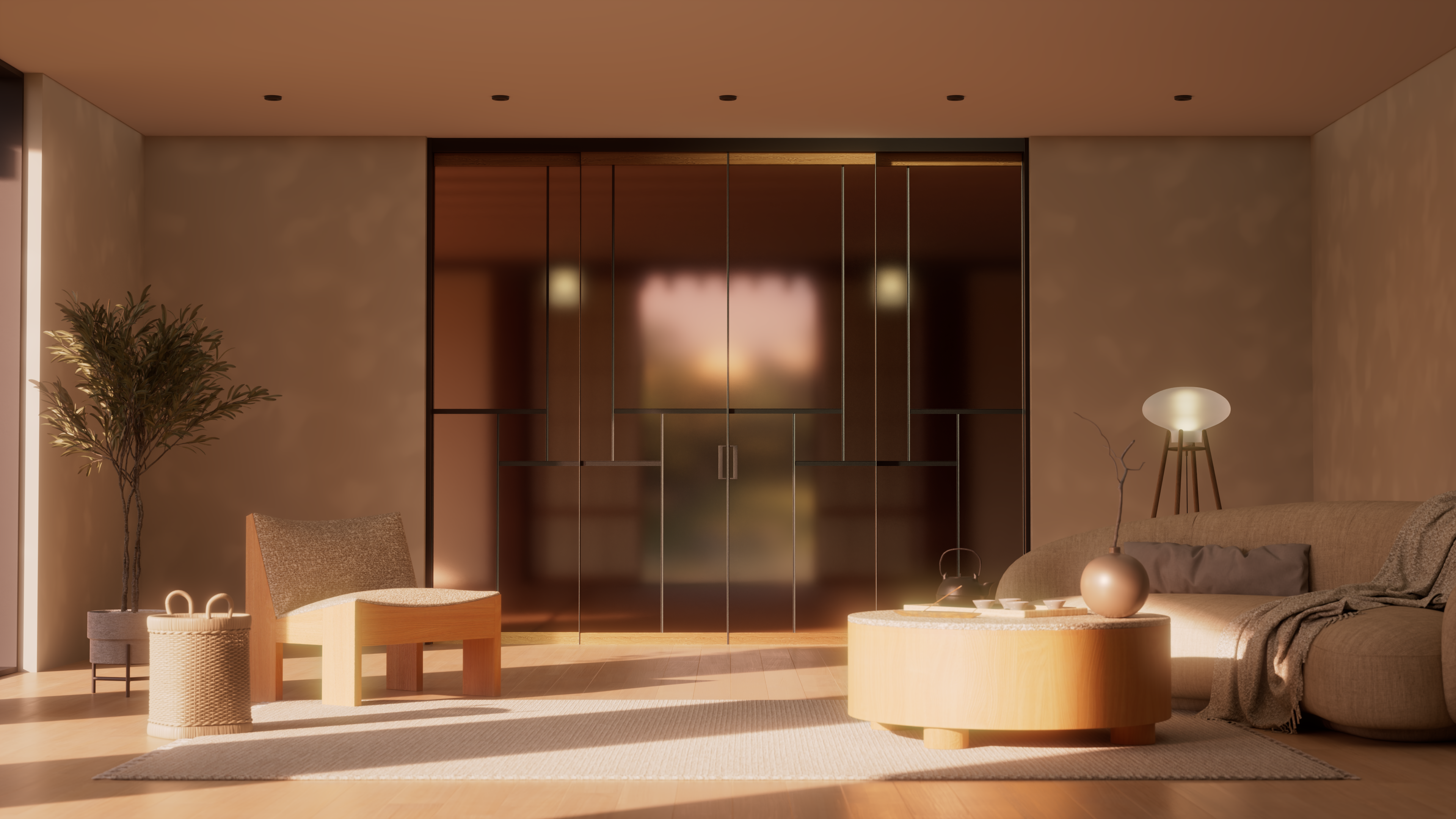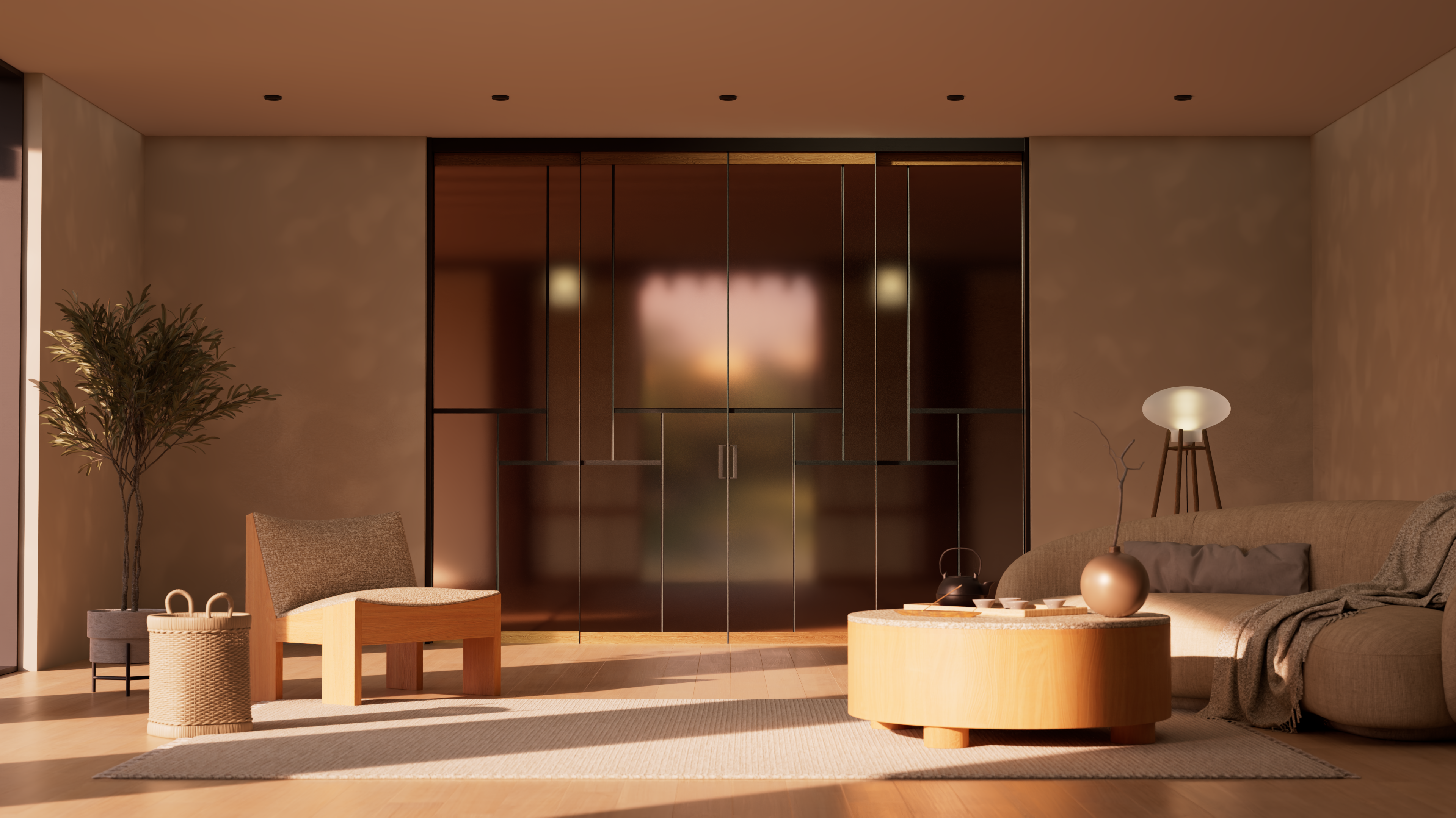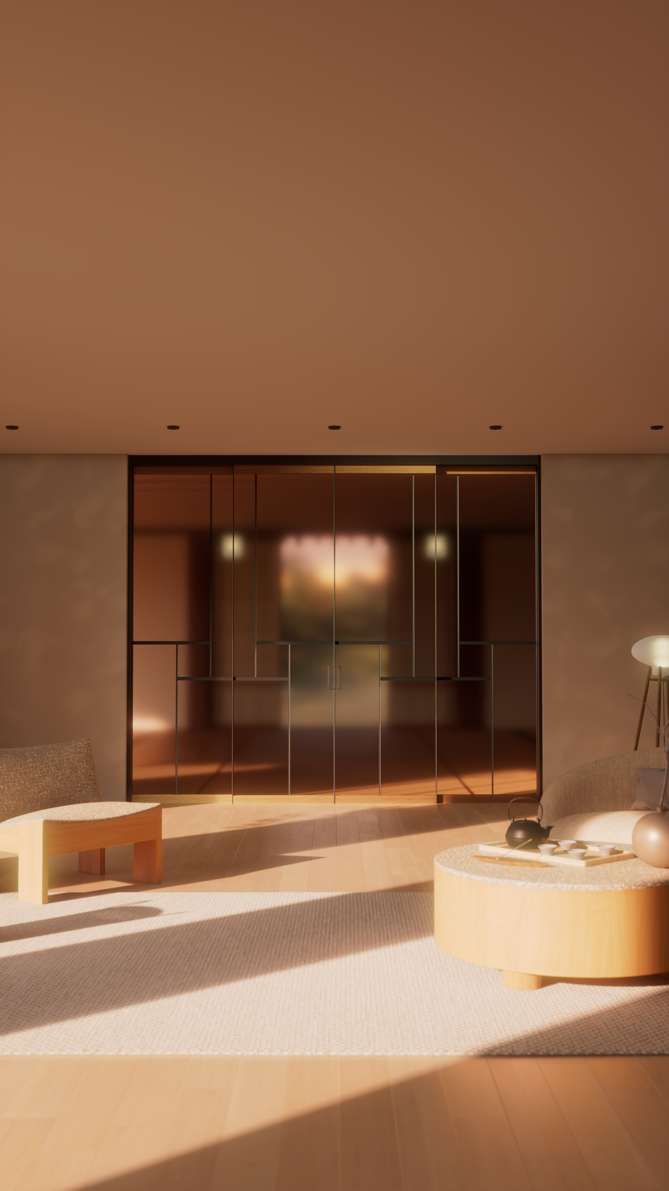 Раздвижные перегородки и двери Shōji, с их деревянными рамами и бумагой washi (традиционной рисовой бумагой), никогда не были просто границами. Это скорее фильтры света, которые мягко улавливают внешнее сияние и превращают его в деликатное, рассеянное свечение, наполняющее дом.