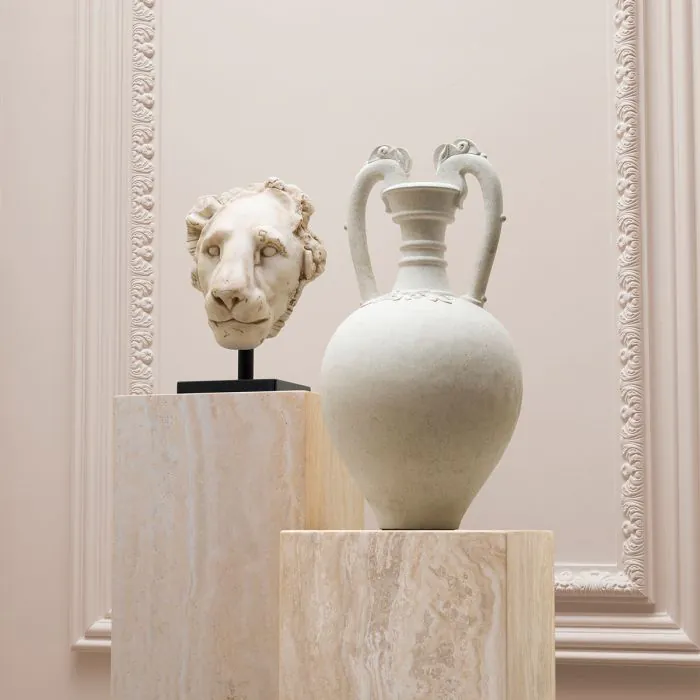 Этот дизайн вдохновлён китайским винным сосудом VII века из Метрополитен-музея. Форма музейного сосуда перекликается с формой греко-римских амфор, а ручки с головами животных заимствованы из персидских и центральноазиатских традиций, но оригинальное произведение искусства уходит корнями в китайское искусство, воплощая космополитический дух династии Тан (618–907). Это слияние стилей здесь переосмыслено в спокойствии, подобном камню.